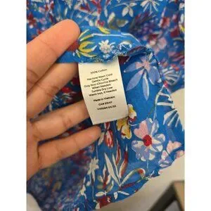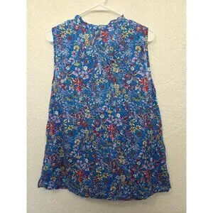 Talbots Blue Tank Top Floral Sleeveless Shirt Lightweight 100% Cotton XL