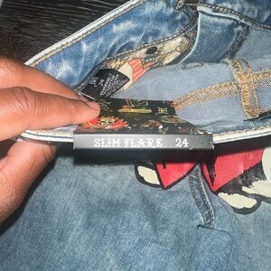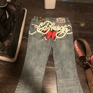 Ed Hardy Light Blue Jeans with Red Heart Embroidery