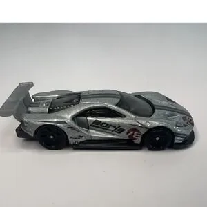 Hot Wheels DTW 92 2016 Ford GT Race 1/64 Grey Diecast, 3.25" Long, Collector Car