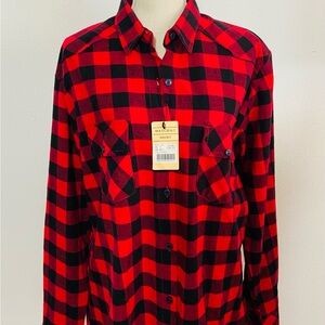 NWT Match Stick Woman’s XL 100% Cotton Bold Red & Black Checked Button Down Top