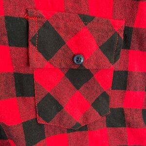 Stand out with this striking red and black checkered shirt from Match Stick known for its comfortable and durable cotton flannel shirts. Ideal casual wear. Comfortable and stylish. Buffalo plaid flannel. Front pockets. Sleeves can be rolled up and secured with button sash.