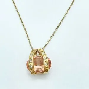 Roman Co Simulated Citrine Necklace | Crystal Stone Gold Pendant Stamped RMN