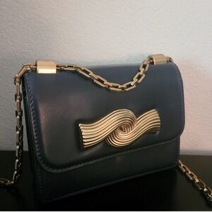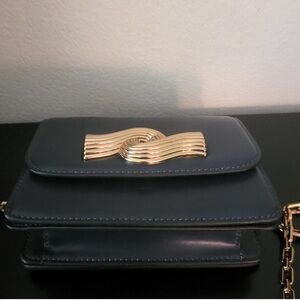 This stylish women's Zara bag features a sophisticated navy blue design with striking gold accents. Perfect for any occasion, it combines elegance with functionality. Perfect for date night