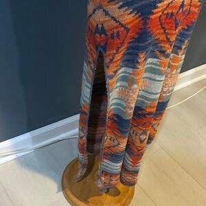Bold geometric patterns in blue and orange. Sleeveless design. Perfect for standout style. No flaws. New without tags. Never been worn.