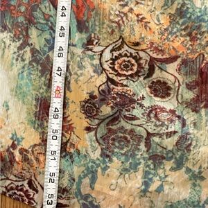 Elegant and effortlessly chic, this Nine West maxi dress features a dreamy abstract floral watercolor print in shades of teal, rust, maroon, mustard, and cream. The cold shoulder cut with flutter sleeves adds a modern feminine touch, while the elastic waist creates a flattering, comfortable fit. Perfect for garden parties, weddings, summer evenings, or vacation dinners. Fully lined for comfort and opacity.