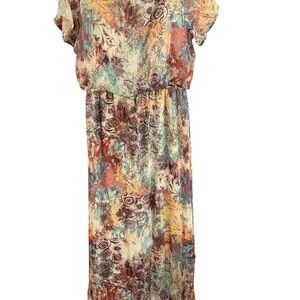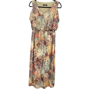 Nine West Cold Shoulder Maxi Dress | Abstract Floral Watercolor Print | Size 2