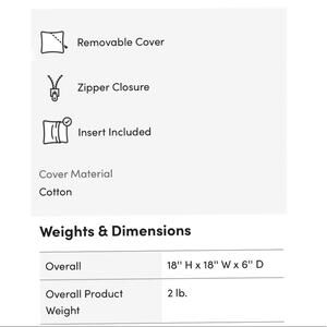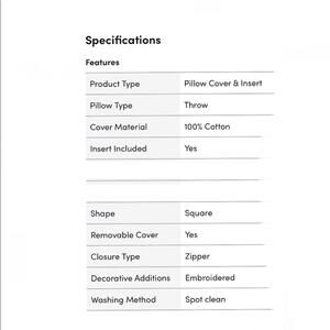 Design Inspiration Gabriela Embroidered Cotton Throw Pillow Cover 18”x18” NEW