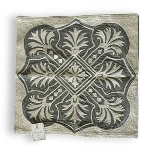 NWT Beautiful embroidered gray Gabriela cotton throw pillow. 18”x18”