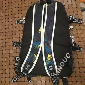 Roblox Kids Backpack. Featuring a vibrant black and blue design, this backpack includes a convenient USB charging port for on-the-go power.