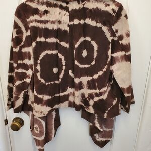 Rachel Roy suede unlined brown/beige tie-dye jacket, drape front, crop back. See pictures for details, measurements and condition. Size L GUC