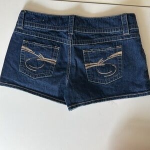 Chic dark blue jean shorts by SO. With a manufactured light distressed style makes it Perfect for everyday wear. Easy to pair with any top.