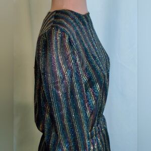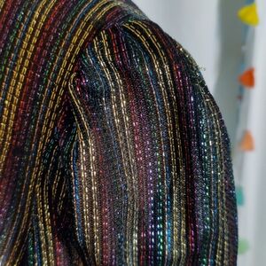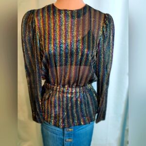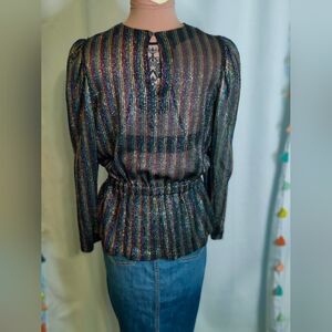 80s peplum Lurex disco Top rainbow Metallic Vintage popover S