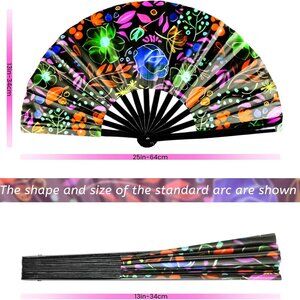 Large Folding Hand Fan, UV Glow Fan for Rave, Festival Folding Hand Fan for Wome
