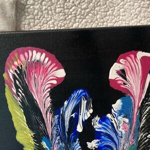 Enhance your space with this stunning abstract canvas art. Featuring a blend of vibrant colors including black, pink, blue, and green, this piece adds a dynamic touch to any room. Perfect for art enthusiasts looking to add a splash of color to their home decor.