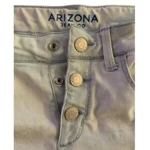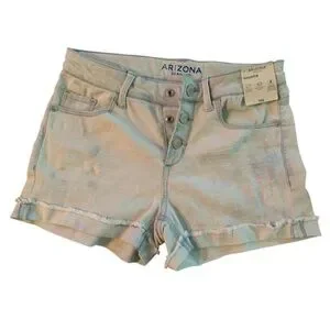 Brand New Arizona Jean Company Light Blue Denim Jean Shorts. These shorts feature a stylish frayed hem cuff and 3 button fly. These are ideal for an every day or casual look.