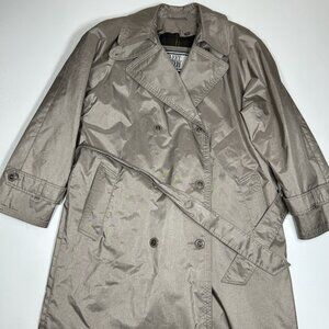 Vtg Fleet Street 80's Trench Rain Coat Women Petite Metallic Beige Jacket Sz 4P