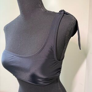 The back one shoulder top is by Abercrombie & Fitch. It has removable pads that are included. It is in excellent condition, no signs of wear. Size Small.