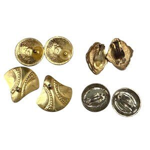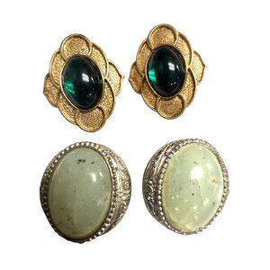 Vintage Paolo Gucci Gripoix & Retro Earrings Set Of 4 - Green & Gold Tones
