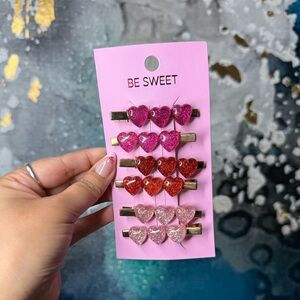 Be Sweet | 3 Pairs Glitter Heart Alligator Hair Clips