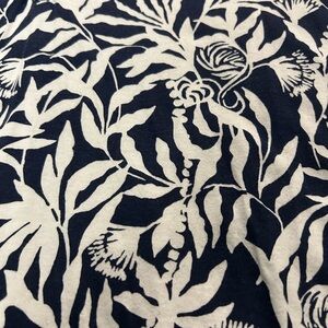 Chic 3/4 sleeve dress with a botanical print. Navy and white colors. Good buttons and 3/4 sleeves. Perfect for stylish outings.