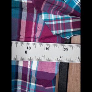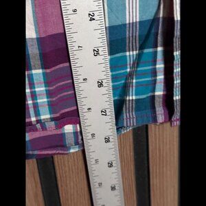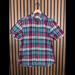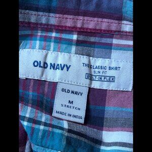 Old Navy Shirt Medium Blue Pink Check Plaid Short Sleeve Button Oxford Slim Fit
