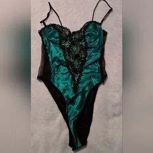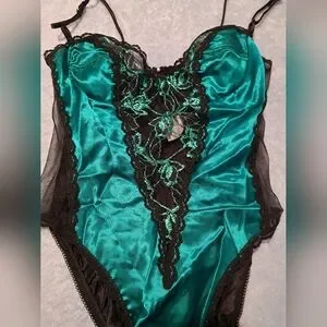 Experience luxury with this satin teal and black lace chemise. Perfect for intimate moments, it combines elegance and comfort effortlessly.