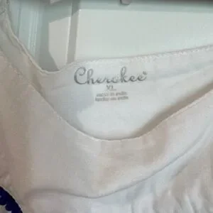 Cherokee 100% Cotton White Dress with Blue Floral Embroidery Girls XL (14/16)