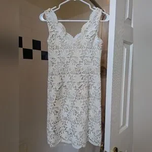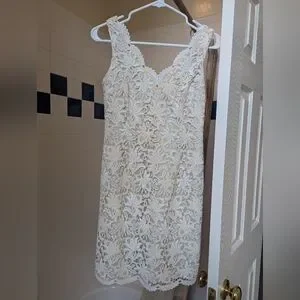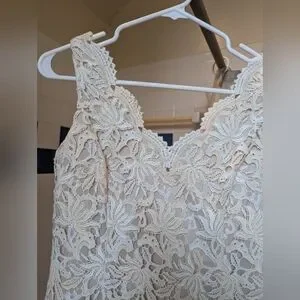 NWT Ann Taylor Sleeveless Lace Overlay Dress Cream Beige Lined Size 00P