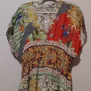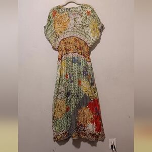 Johnny Was Maxi Dress Silk Patchwork SzL Green/Red Floral Boho Lightweight