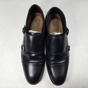 Aldo Men's Holtlanflex Monk Strap Slip-on Black Leather Buckle Loafers Size 8