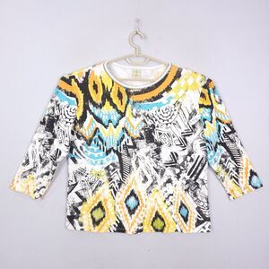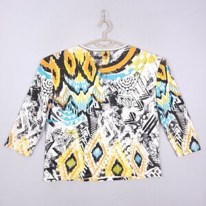 Jess & Jane Top Shirt Womens Size 1X Pullover Geometric Abstract 3/4 Sleeves