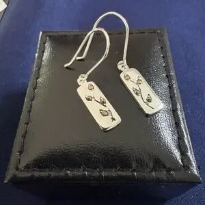 These beautiful Sterling silver rectangular earrings have pretty marcasite floral designs on them. They can be worn casually, and even with a formal outfit- think Little Black Dress! Adorable and sophisticated, these are a great go to! Dainty, feminine and just so pretty!
