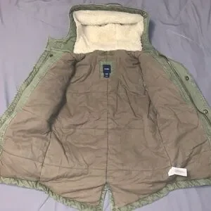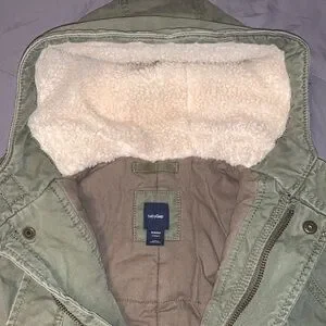 Baby Gap quilted utility jacket with Sherpa lined hood. Heavy jacket perfect for Fall and Winter. Size 5T All my clothing is washed in scent/dye free detergent, no dryer sheets :)