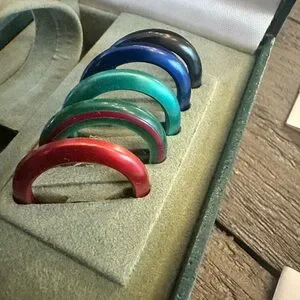The original set comes with 6 interchangeable bezels original to the watch purchase. Overtime, I have collected several colorful interchangeable bezels from different watch sellers on Etsy and EBay. As far as I know, these bezels are original to other Gucci watch models of the time from other watches/sets.
