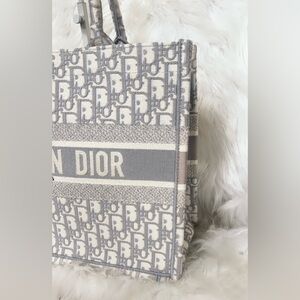 DIOR Book Tote, Medium, in Gray & Ecru Oblique