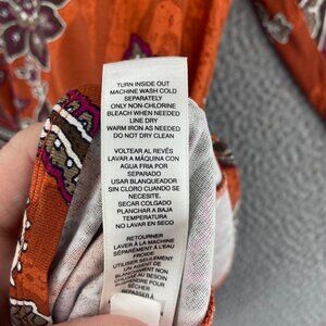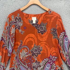 Chicos Top Womens 0 US Small Brown Russet Paisley Multi Print 3/4 Sleeve Stretch