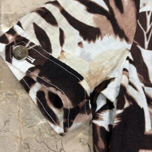 This Marco Pecci top features a striking black and white pattern, offering a bold and stylish look. The notched collar and boxy fit add a modern touch to this button down shirt, making it a versatile addition to any wardrobe.
