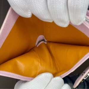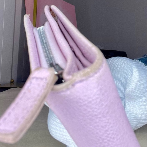 Authentic Bvlgari two fold wallet in lilac. It feature 8 card slots. Snap works, zip around coin pocket with some coin residue GUC