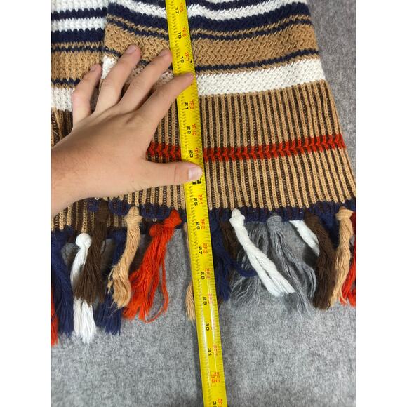 Vintage 60s 70s Sears Striped Fringe Tassel Cardigan Womens One Size Knit Open Front Retro