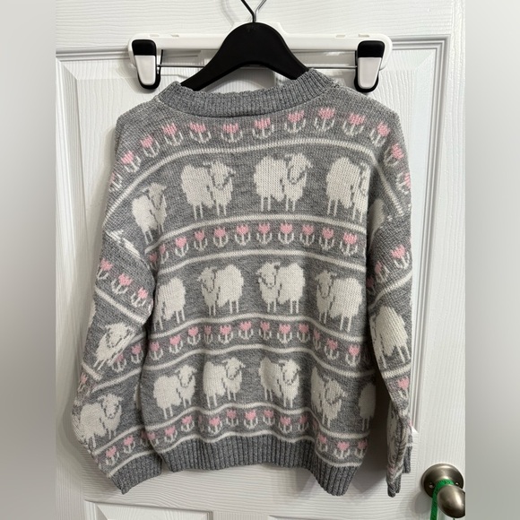 Vintage Adele Women Medium 80s Sweater Sheep Tulips Flowers Fairy Kei Kawaii