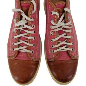 Bruno Magli Italy Burgundy Brown Canvas Leather Mid Sneakers Mens 7 Casual Shoes