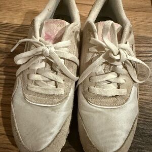 Chic Reebok sneakers in cream with pink accents. Slightly dirty but an easy fix
