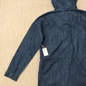 Forever 21 Contemporary Women Oversized Denim Jean Hoodie Jacket Utility Parka Pit to Pit 21” Medium Blue