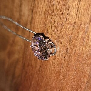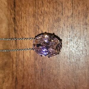Light Pink Cubic Zerconia Necklace Silver Stainless Steel NEW With Tag Gift