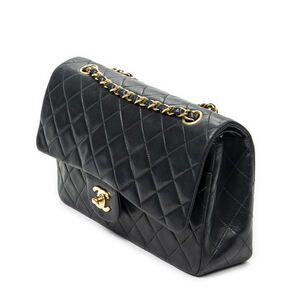 Chanel Shoulder Bag Classic Double Flap 26 in Black Quilted Lambskin Leather and Gold hardware. The product is in Very Good Condition (AB).