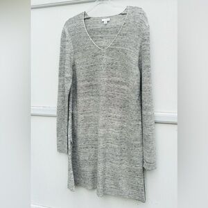 J Jill PURE Tunic Top Women M Linen Cotton Blend Gray Long Sleeve V-neck Stretch