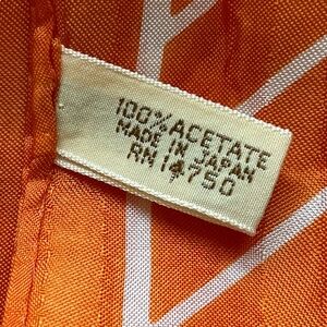 Tag: 100% acetate; made in Japan; RN 14750; hand wash separately; use mild soap or detergent; line dry; cool iron