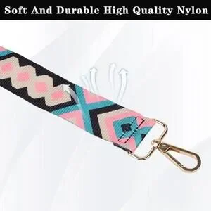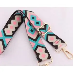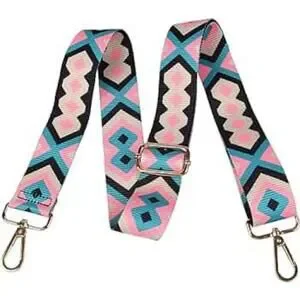 Brand new Geometric Pattern Adjustable Purse Strap In Pink, Black and Blue. Give your handbag a face-lift with our beautiful detachable shoulder straps. Made out of nylon.