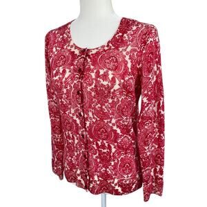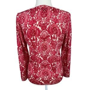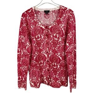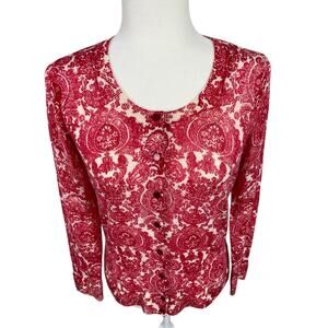 Talbots Merino Wool Button Front Cardigan Sweater Medallion Floral Red Sz MP