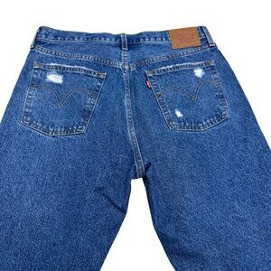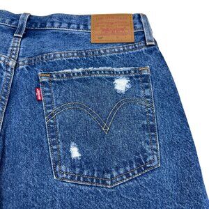 Levi's Premium 501 Womens Blue Jean Pants Straight Leg Distressed Button Fly, Size 31/26 NWT